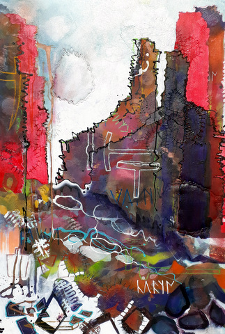 Copper Mine Ruins,Anglesey August 28, 2019August 28, 2019 | oucho1964 Sewn wool, acrylic paint,collage and oil stick on hand dyed fabric. 130x90cm