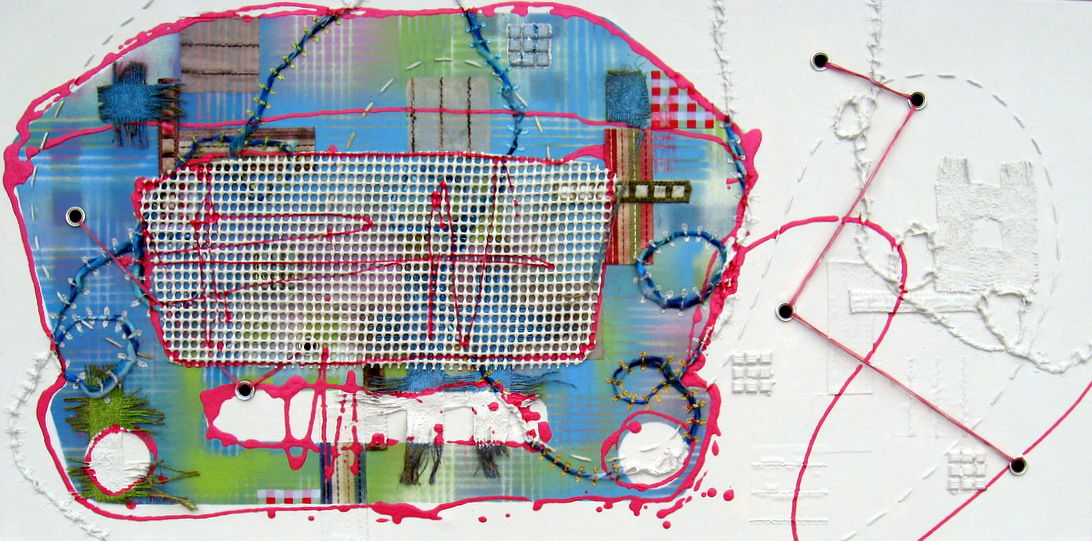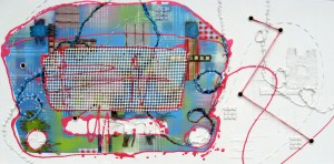 Frequency Hz August 11, 2017August 28, 2019 | oucho1964 Collage, acrylic paint, metal on canvas 100x50cm