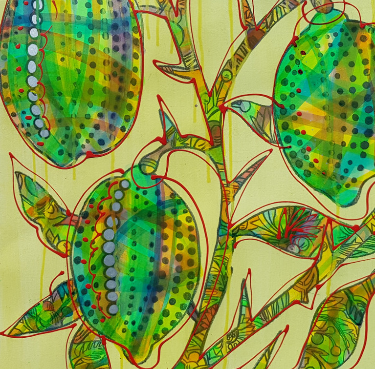 Les citrons 1 August 11, 2017August 28, 2019 | oucho1964 China clay pencil, acrylic paint on Heritage paper 50x50cm (75x75cm framed)