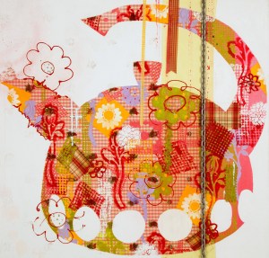 Polly August 11, 2017August 28, 2019 | oucho1964 Collage, Oil paint and metal on upholstery fabric 100x100cm