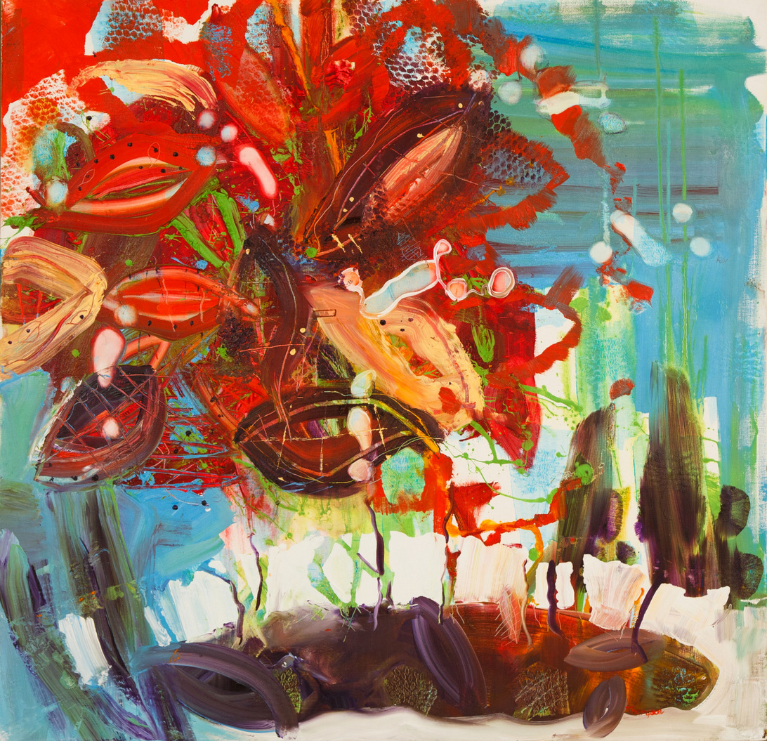 Oil paint on upholstery fabric